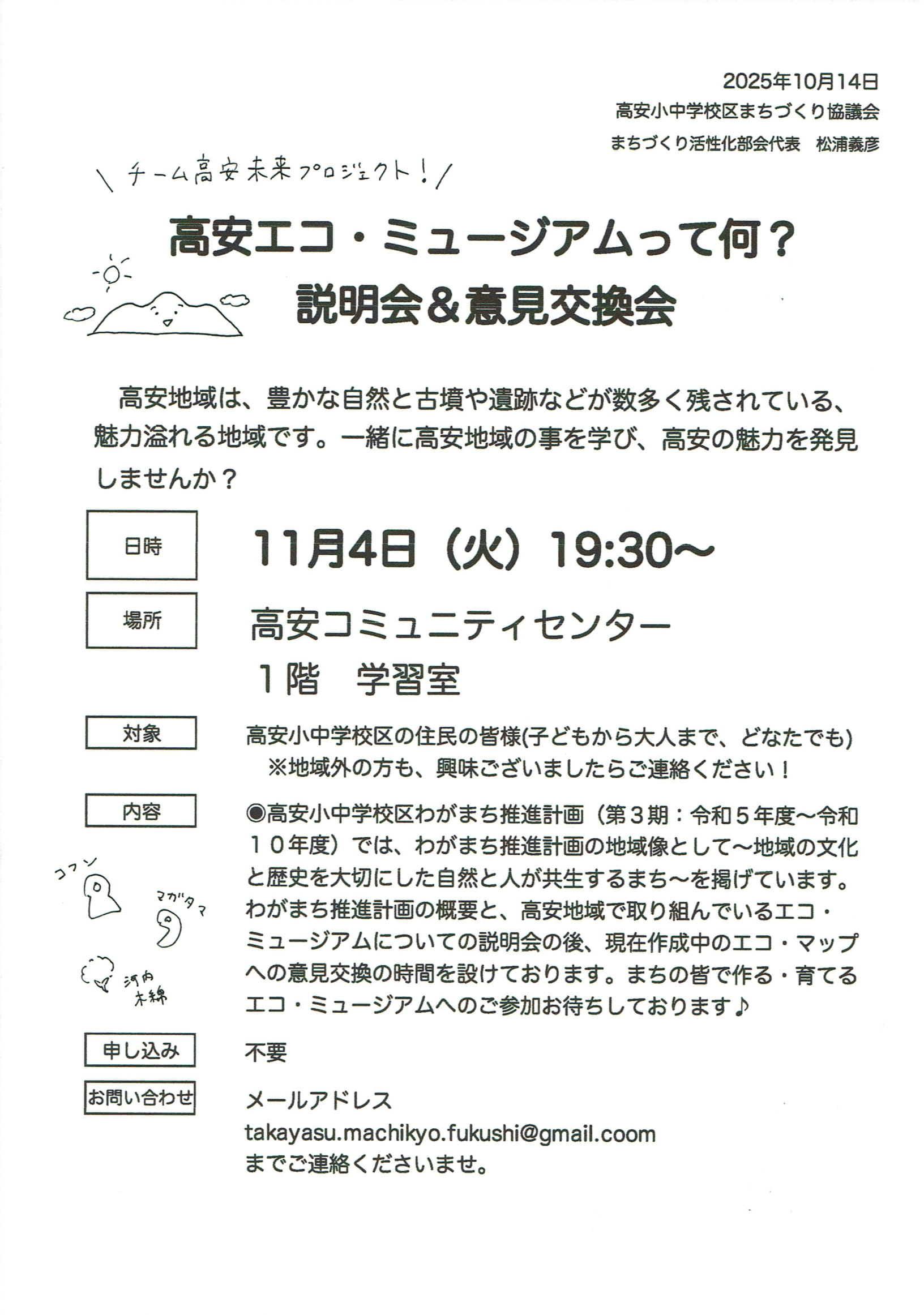 憩いの広場(旧中高安小学校跡地)ワークショップのお知らせ